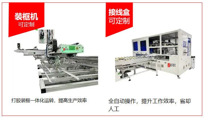 装框与收尾决定组件机械强度与合规性,核心设备4类:自动组框机自动化完成边框组装与密封,提升抗冲击能力;接线盒焊接机实现自动化焊接密封,保障电路安全;激光打标机刻印产品关键信息,清晰持久、便于追溯;成品打包机实现自动化封装码垛,适配仓储运输。#光伏组框机 #接线盒焊接 #激光打标