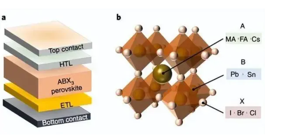 钙钛矿太阳能电池(PSCs)是利用钙钛矿型材料作为吸光层的新型化合物薄膜太阳能电池。钙钛矿的命名取自俄罗斯矿物学家Perovski的名字,结构为ABX3以及与之类似的晶体统称为钙钛矿物质。