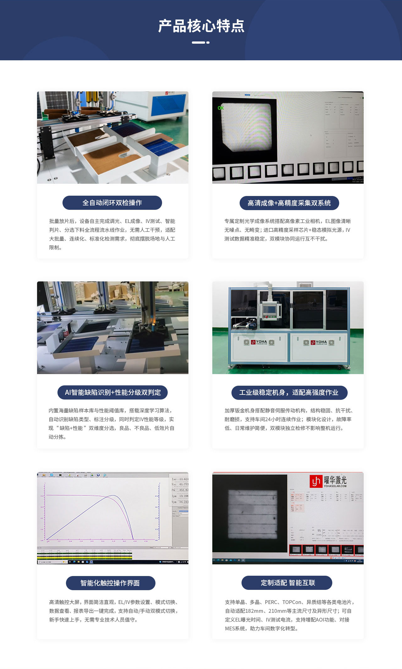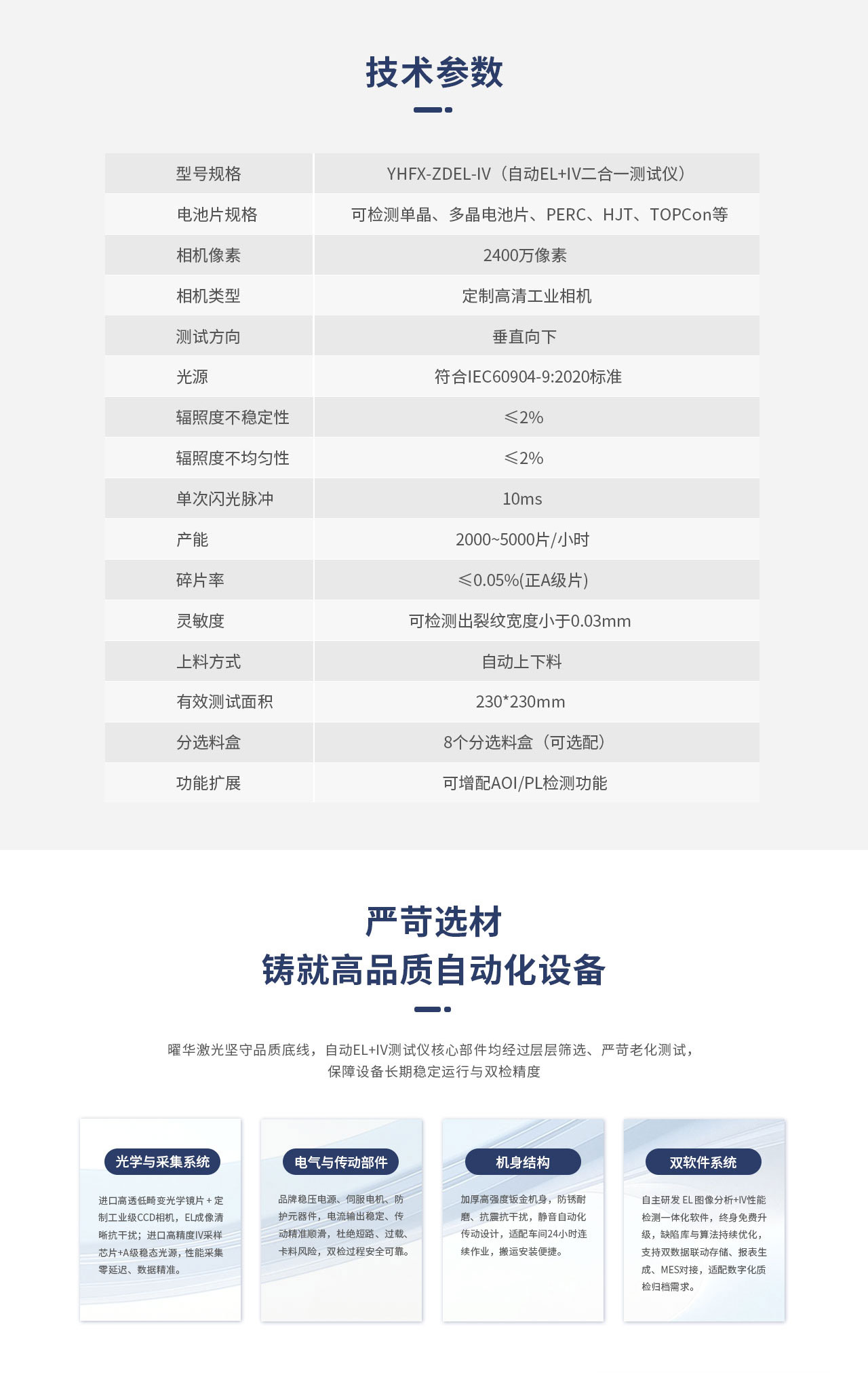 曜华激光自动太阳能电池片EL+IV分选一体机