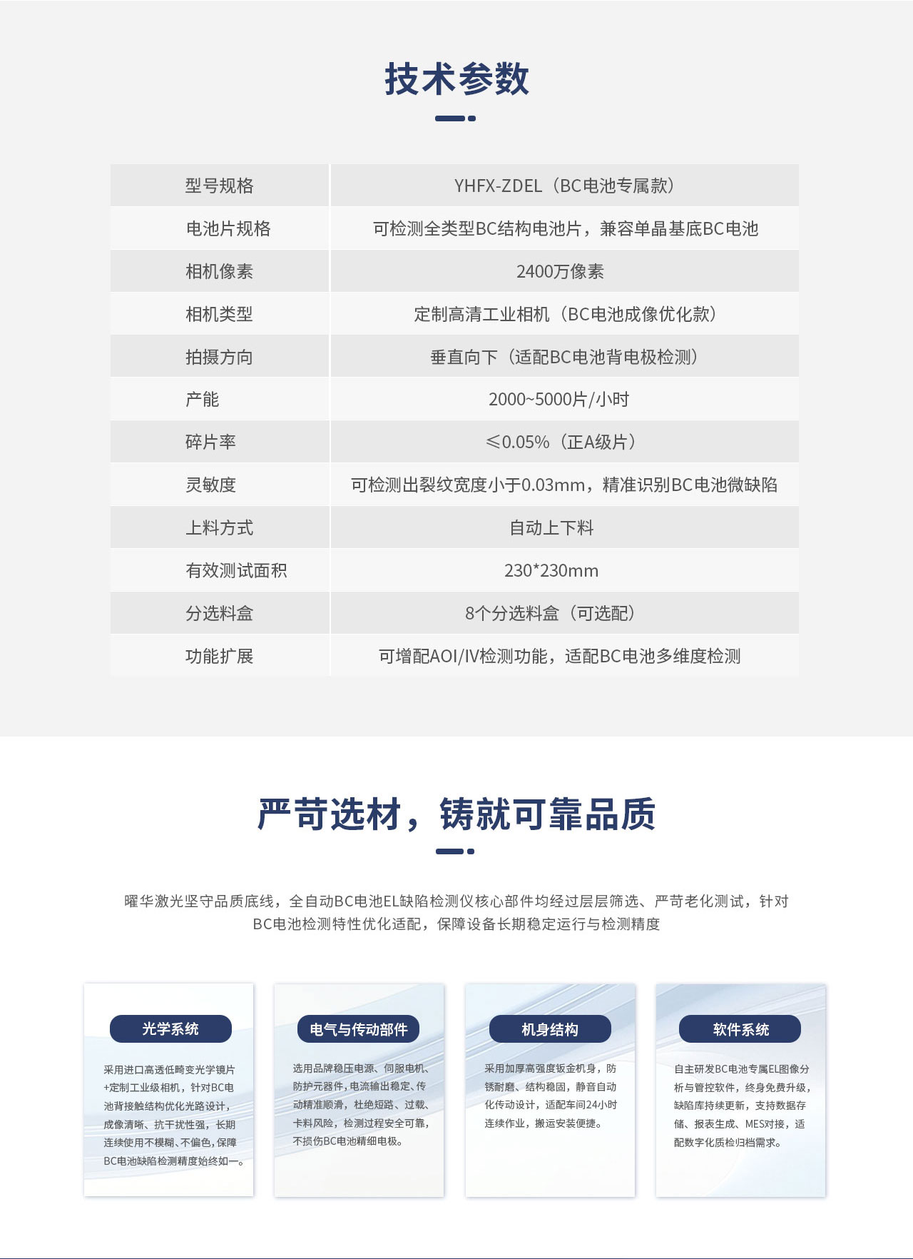 曜华激光全自动太阳能BC电池片EL缺陷检测仪