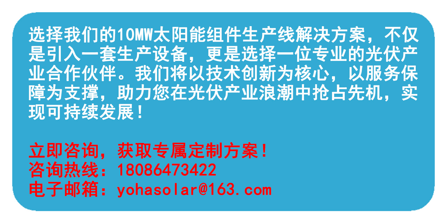 在全球“双碳”目标引领与新能源产业蓬勃发展的浪潮下,太阳能作为清洁、高效的可再生能源,已成为能源转型的核心力量。为助力企业快速布局光伏产业、提升核心竞争力,我们依托多年光伏装备研发与项目落地经验,推出。该方案以“高效智能、稳定可靠、绿色经济”为核心,实现从电池片到成品组件的全流程标准化生产,满足不同应用场景下的组件制造需求,为客户提供从规划设计到投产运维的一站式服务。