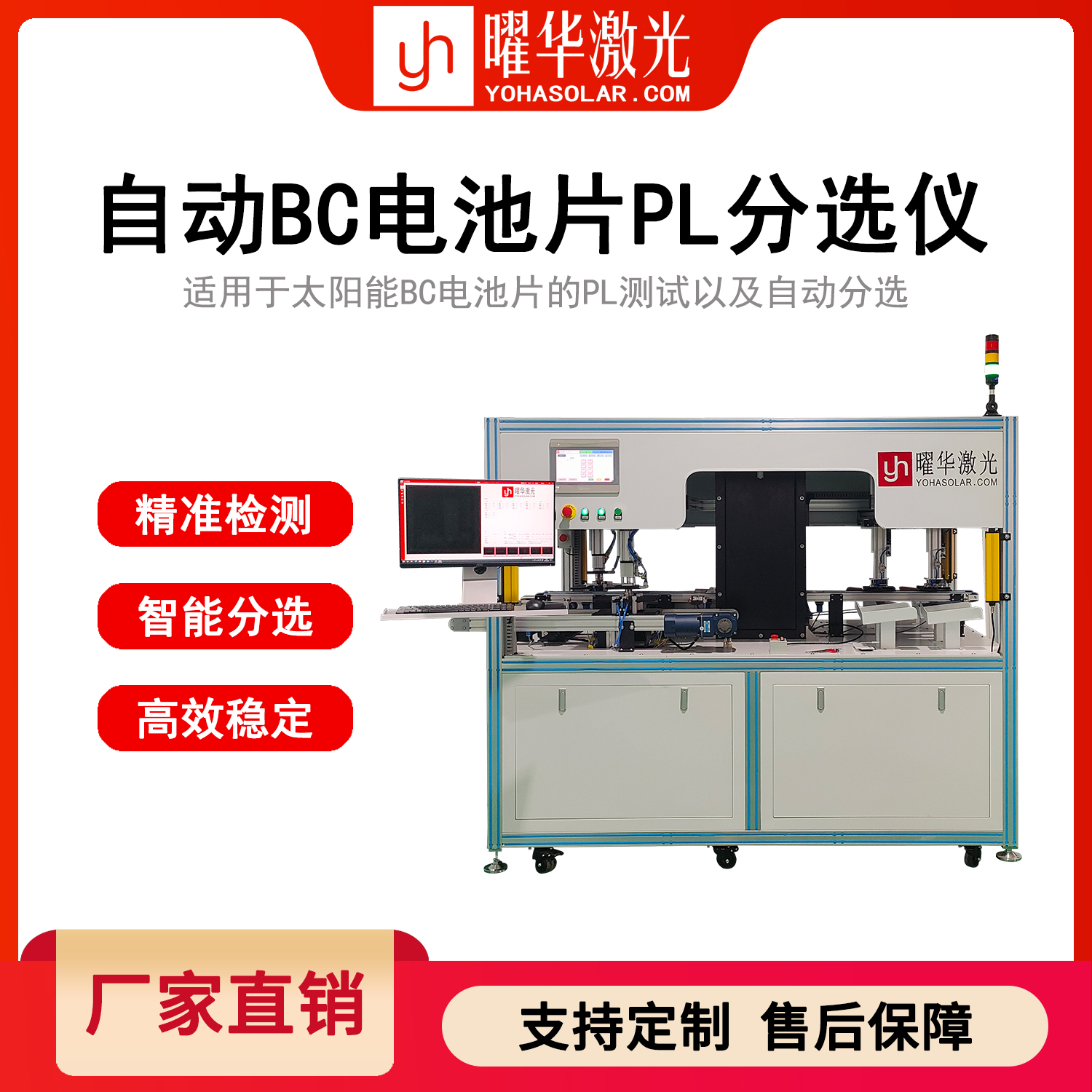 助力BC产线实现智能运维、构建缺陷预警体系,是曜华研发该分选仪的初心。深耕光伏装备多年,曜华以智能化创新为核心,贴合企业稳效需求,产品契合行业发展趋势。该分选仪凝聚曜华技术积淀,是产线智能稳效升级优选,未来将持续深耕技术,助力企业稳产降本。