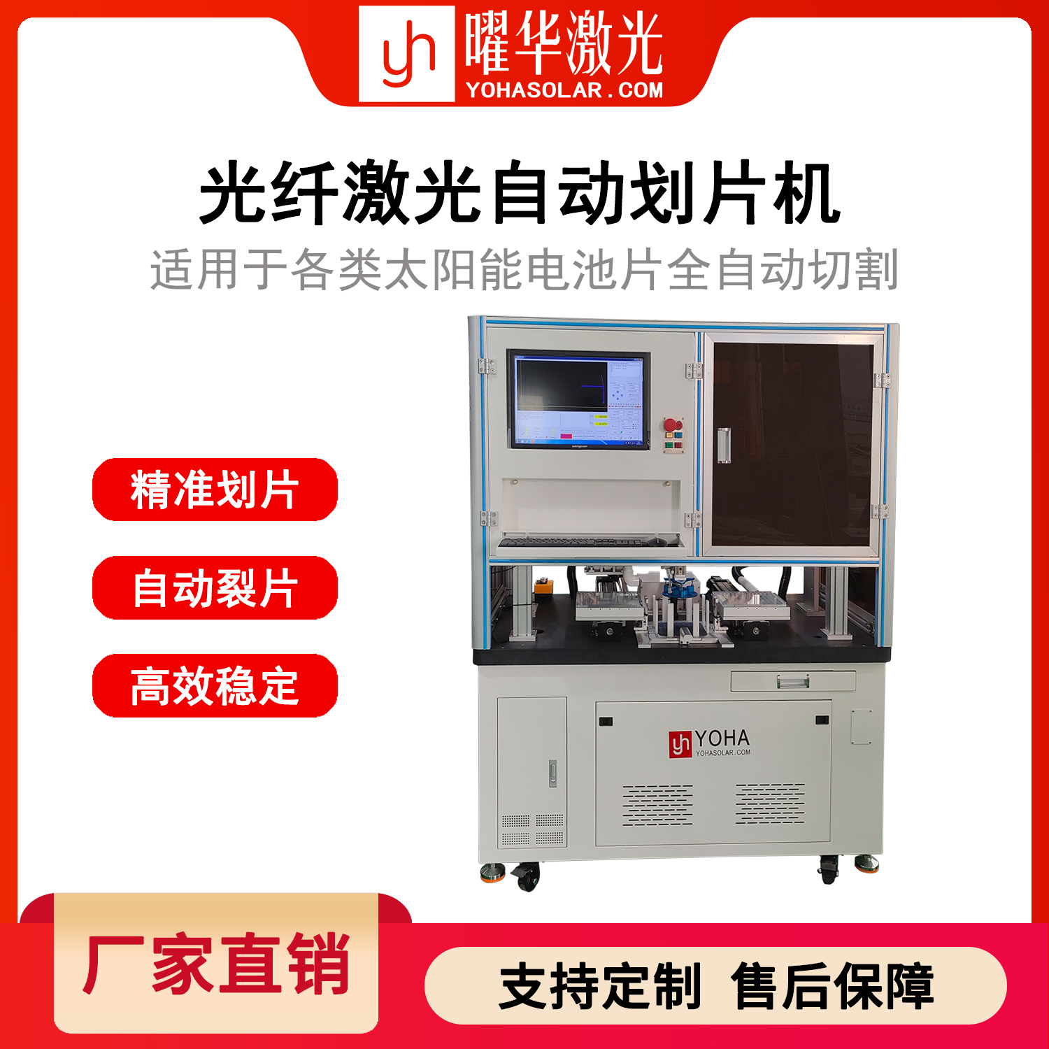 本方案精准解决传统划切工艺核心痛点,以无水、无损、高精、高效为核心优势,适配光伏产业技术升级与量产刚需。既保障高效薄片、大尺寸电池的加工品质,又实现降本增效与低碳减排,助力企业突破发展瓶颈,推动光伏制造产业高端化、智能化、绿色化发展。