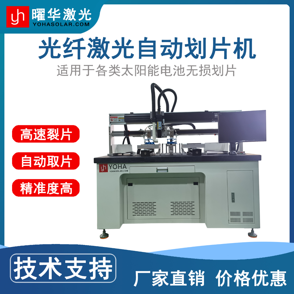机遇与挑战并存,210mm大硅片普及为激光划片设备企业带来新契机。曜华激光精准捕捉需求,优化升级自动太阳能电池片光纤激光划片机,完美适配大硅片划切,实现精度、效率、适配性三重突破。设备搭载1064nm光纤激光器,光束质量达标准基模,自动定位精度≤±0.05mm,智能光路调控可补偿翘曲偏差,杜绝瑕疵;优化传动结构,划片速度600mm/s、效率突破1500片/小时,适配长轨迹划切;双工位设计兼容125mm-210mm全尺寸,可切换加工模式,支持波长与脉冲宽度可调,满足新型电池片需求。#大硅片激光划片 #光伏设备升级
