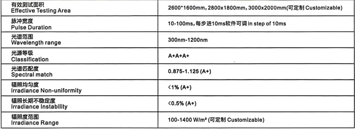 - 专业解读:指设备能均匀辐照的最大测试区域,决定了可测试的组件尺寸。