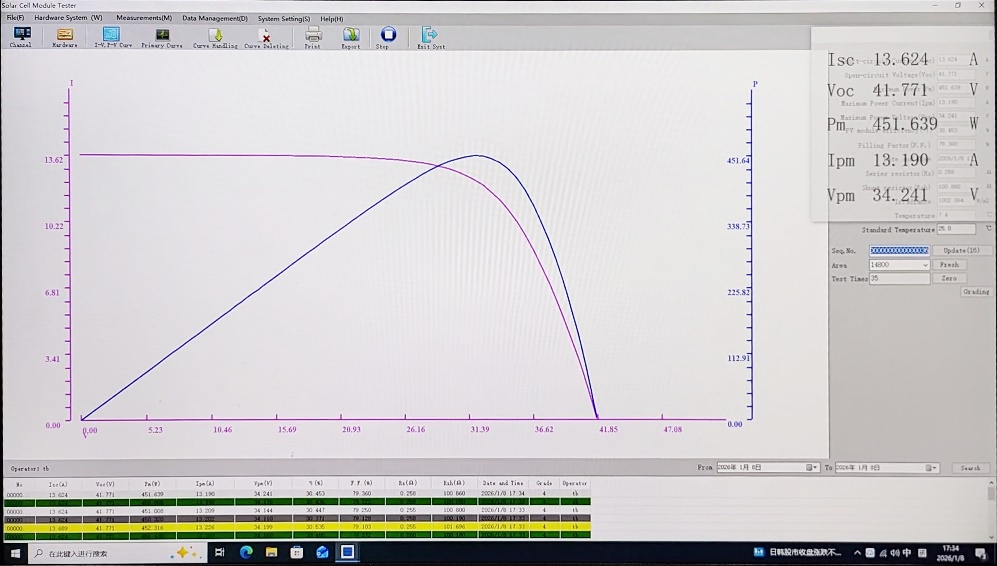 :原有人工抽检效率低,电学性能漏判率高,成品功率偏差大,产线良率偏低,无需流水线集成,需操作便捷、精准高效的IV检测设备,适配批量抽检与小批量生产检测需求。